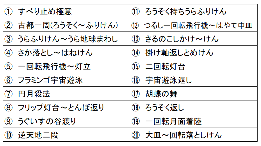 ③成功1回につき1得点とする。(決勝競技前半:30点満点、決勝競技後半:20点満点)